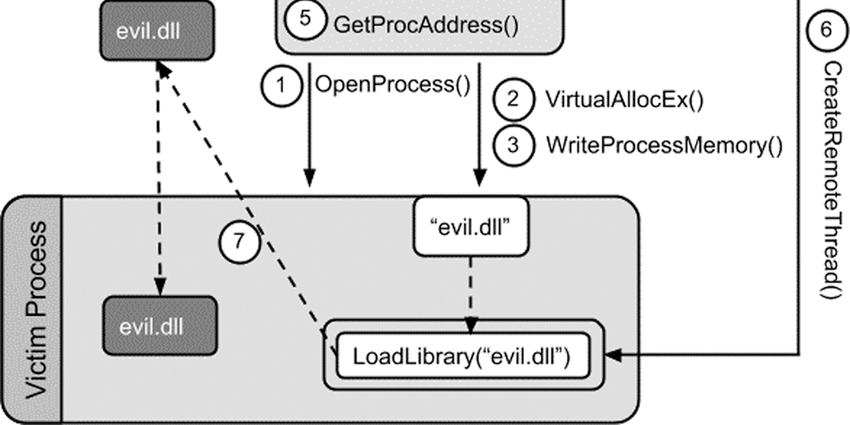 The traditional approach to achieving DLL injection follows this pattern:
